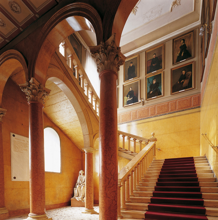 Fra la maestosità delle decorazioni a bugnato liscio, gli affreschi di pregio e l'ampio atrio ornato di busti e ritratti, qui si respira un'atmosfera di lusso raffinato d'altri tempi.
