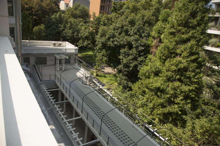 E' presente un'area espositiva di 400 mq al piano terra, un bistrot di 100 mq che eventualmente può essere utilizzato in esclusiva con anche un ampio spazio esterno. Al piano -1 c'è ulteriore spazio solitamente ad uso magazzino. Ai piani superiori invece si trovano le prestigiose residenze di artisti che si possono utilizzare attivando con loro una collaborazione artistica.