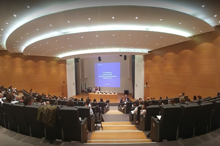 Si tratta di uno spazio ampio e moderno, dall'ottima acustica e perfettamente attrezzato con le nuove tecnologie, di cui si può usufruire durante tutti gli eventi.