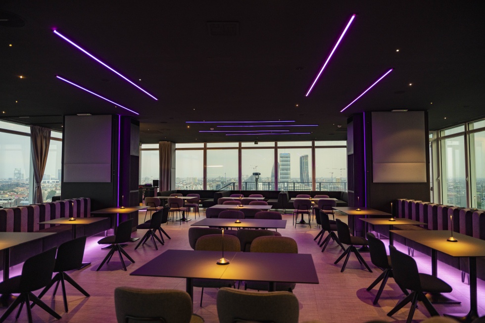 La terrazza coperta si presta anche a cocktail serali e incontri informali, con spazi modulari facilmente adattabili a esigenze diverse. Situata al 20° piano, la location combina ambienti flessibili, proposta gastronomica premium e viste aperte sulla città, offrendo una soluzione professionale e versatile per eventi corporate, presentazioni di prototto, incontri direzionali e occasioni di networking.