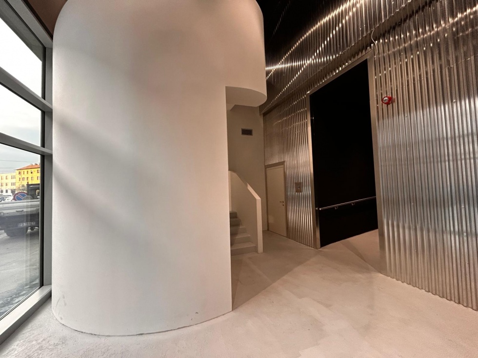 La struttura si sviluppa su una superficie complessiva di 1.200 metri quadrati su due livelli: 950 mq al piano terra e 250 mq al primo piano. Gli ambienti colpiscono per ampiezza e versatilità, qualità che consentono di adattare gli spazi a configurazioni molto diverse tra loro.