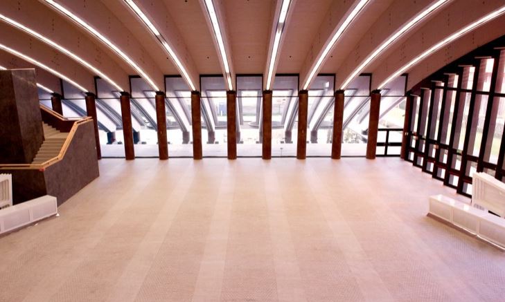 Lo Spazio Lobby è la location di oltre 1.000 mq, con ampie vetrate completamente oscurabili affacciate su un parco. Caratteristico il soffitto a volta in travi in legno lamellare e il pavimenti in granito. Lo spazio è usufruibile come unico ambiente oppure può essere facilmente suddiviso in più aree che consentono lo svolgimento contemporaneo di più momenti all’interno dell’ evento.